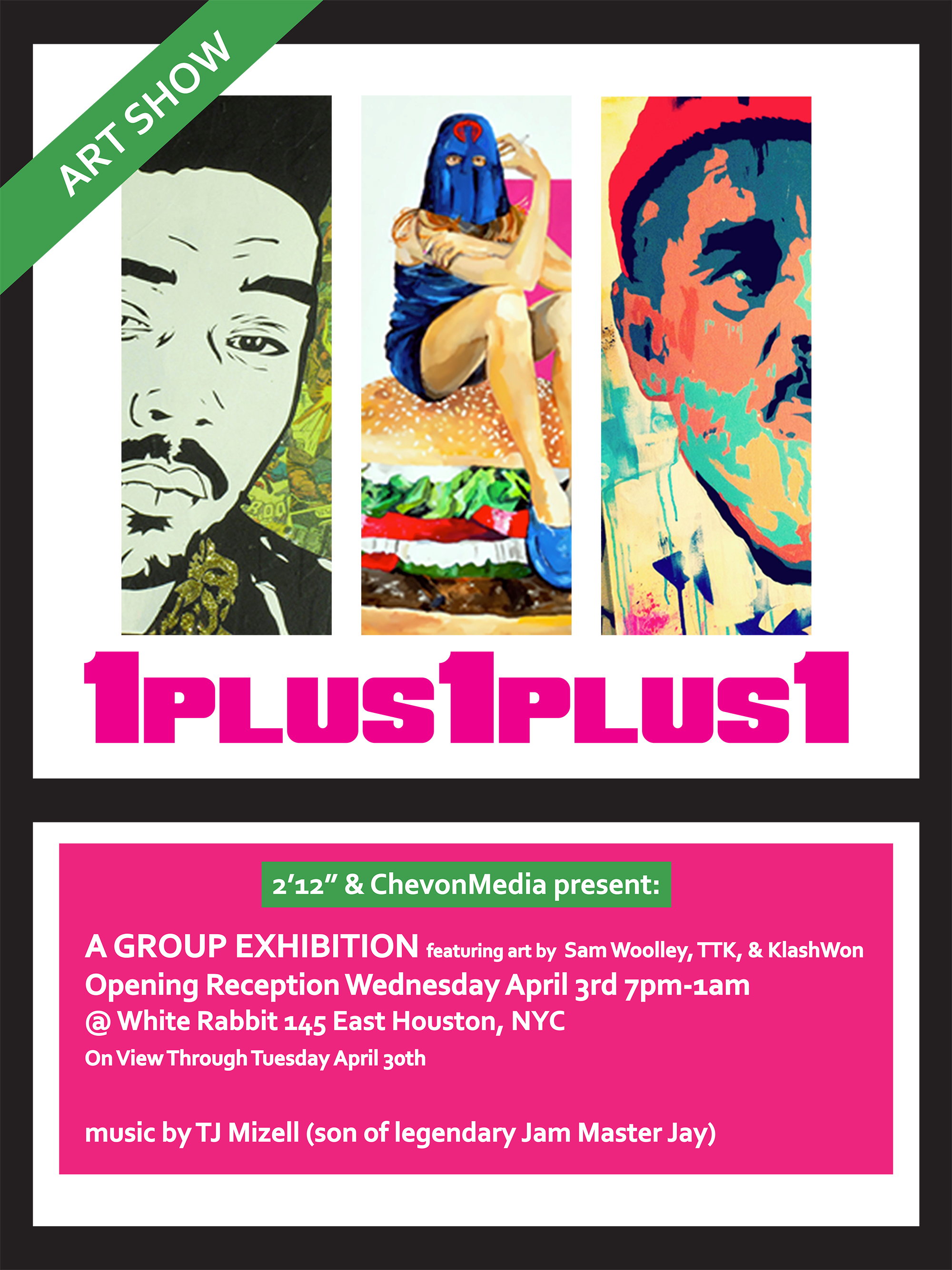 3 young cats: a black dude, a puerto rican & a white kid join forces in this show featuring heavy color & non-traditional styles. All 3 were raised differently but are connected through talent, personal relationships, love of music * pop culture. You're invited to experience & take home a piece of their world this April.