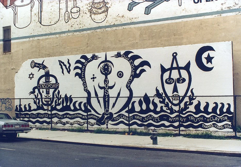 response to curbed.com Bowery Mural piece.Because the Wall had a history, because of the location, and because the Wall became just a dumping ground, not in use, Elsa Rensaa and I took it for most of the summer of 1990. This was during the years of social unrest in the East Village. My art was a political message relating to Justice and Democracy. My piece is on my Facebook page. After we activated the Wall, Tony Goldman, a few months later, turned it into a billboard. Chico, the LES muralist, went over for my piece for a wine ad. Because I am in the same community as Chico and he never told me he was getting paid to go over my image I went over and buffed his piece with brown paint. I went to one of his spots, Explained what was up and he later stopped by my place. We worked it out and we were good. -clayton patterson
